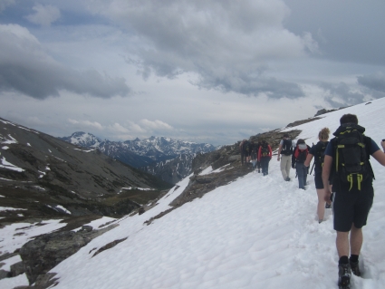 After a glorious morning of hiking along high ridges, meandering through an eerie burnt-out forest and zig-zagging down steep snow-covered slopes, the weather has turned.